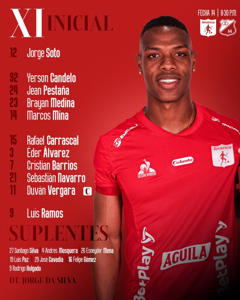 América de Cali hoy se mide ante Millonarios por la fecha 14 de la Liga BetPlay. Jorge Da Silva ha definido su once para este importante duelo en el Estadio Olímpico Pascual Guerrero.