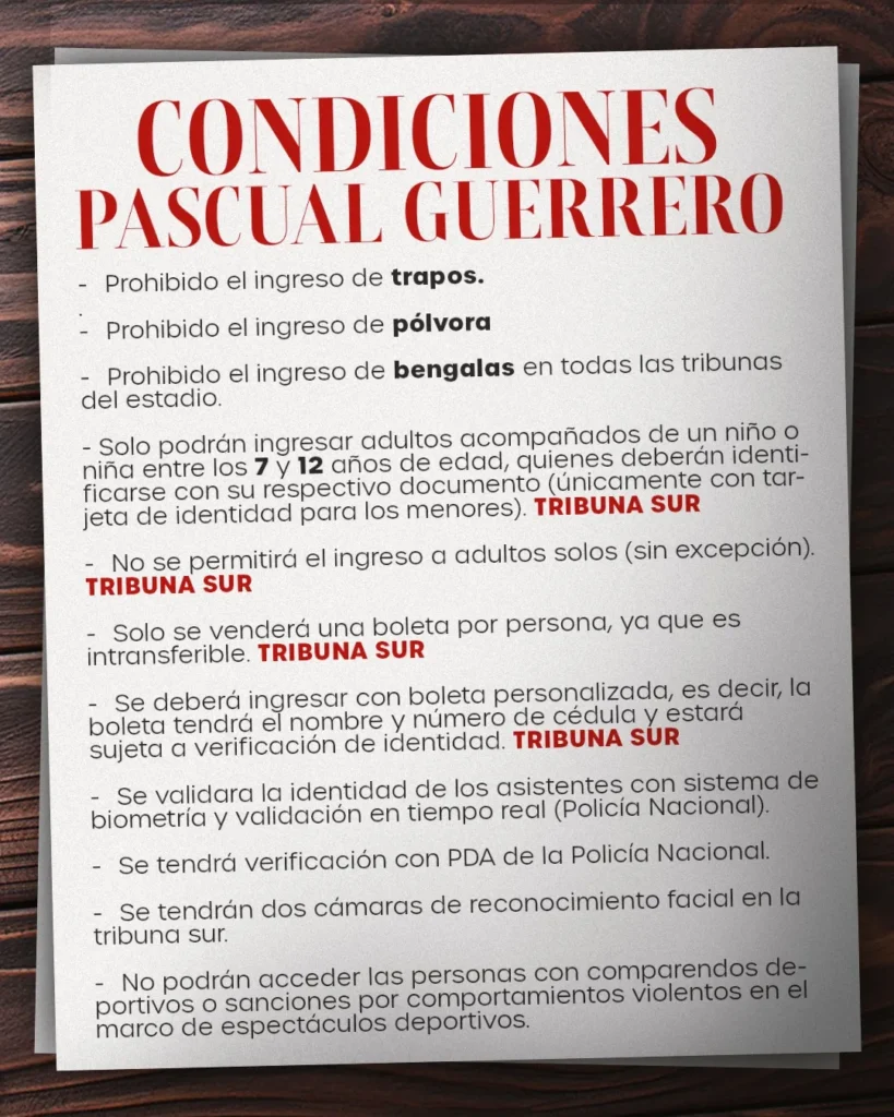 Condiciones de Seguridad para ingresar al Pascual Guerrero