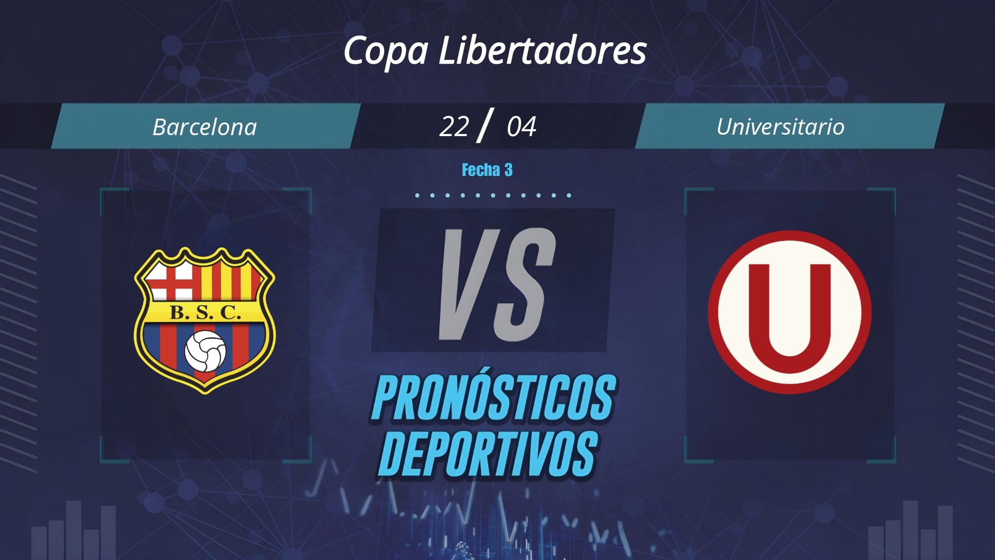 Barcelona vs Universitario se enfrentan en esta tercera jornada de la Copa Libertadores de América. Duelo clave para ambos clubes, pues el local quiere empezar a sellar su clasificación a la siguiente ronda. Mientras el elenco peruano busca seguir con vida. No olvides de jugar y ganar en las mejores casas de apuestas del mundo, bet365 y Bwin. En 365Scores encontrarás la mejor predicción deportiva