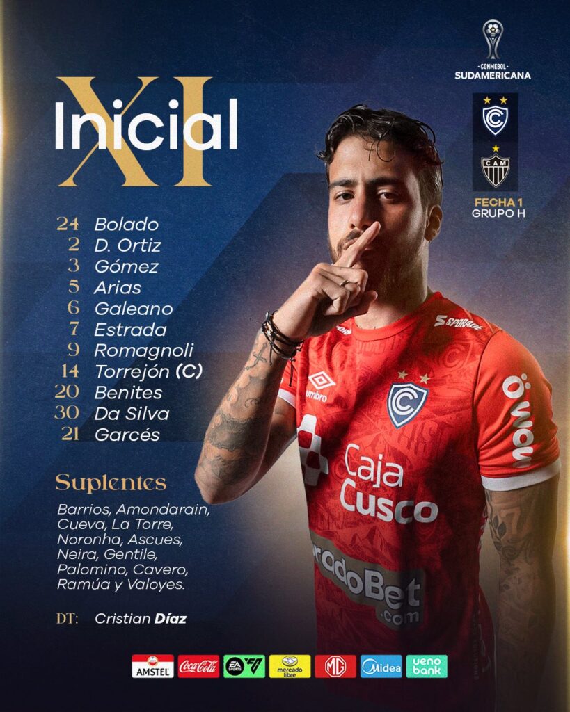 Cienciano hoy debuta en la Copa Sudamericana, enfrentando a un grande del continente como Atlético Mineiro. Conoce la alineación confirmada del equipo de Cristian Díaz y los detalles del partido.