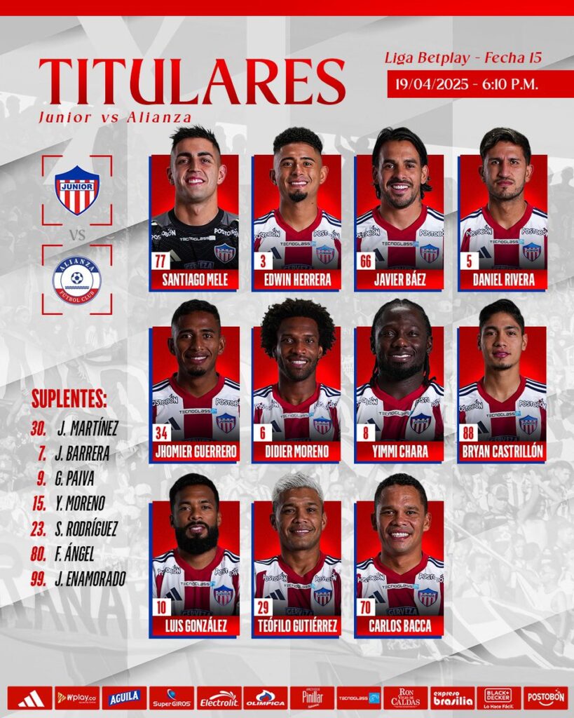 Formación de Junior hoy vs Alianza