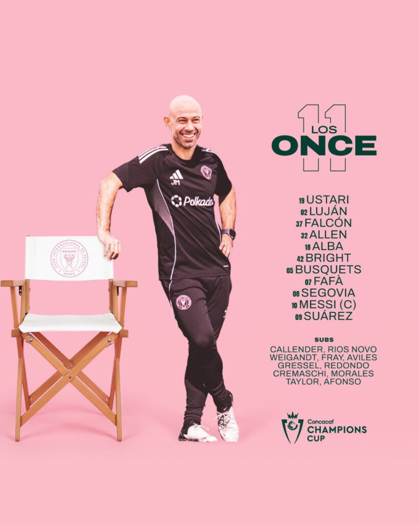 El entrenador Javier Mascherano tiene todo definido: con Lionel Messi desde el arranque, Inter Miami saltará al campo de juego con un esquema 4-3-3 para ir en busca de la clasificación a octavos.