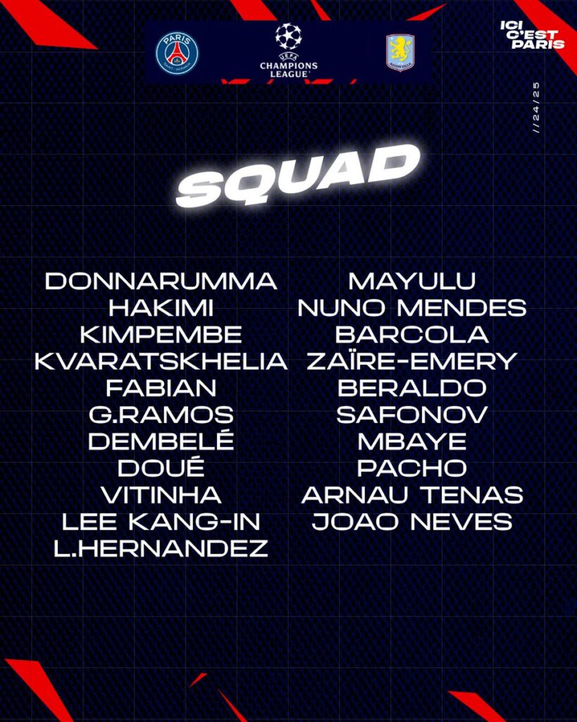 Alineación del PSG hoy vs Aston Villa, sin Marquinhos
