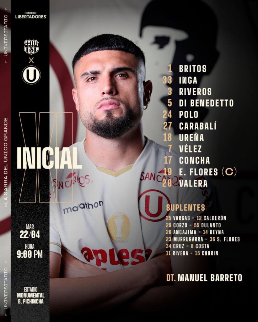 Universitario hoy vs Barcelona: alineación confirmada por la Copa Libertadores