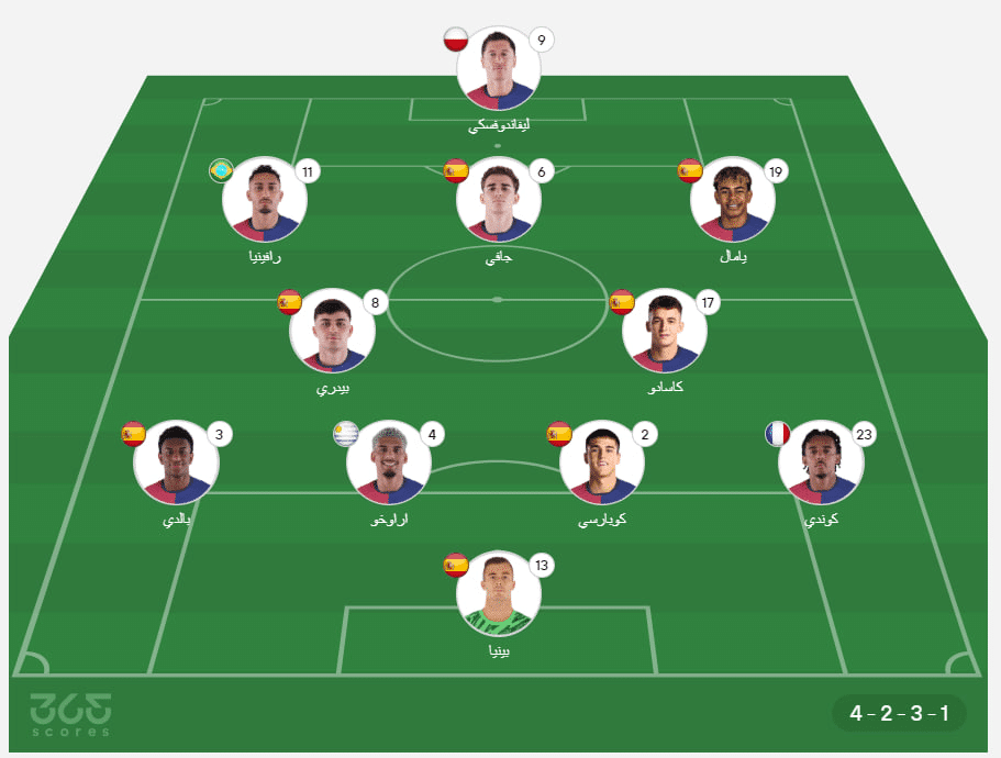 - خط الوسط الهجومي: لامين يامال، جافي، رافينيا.