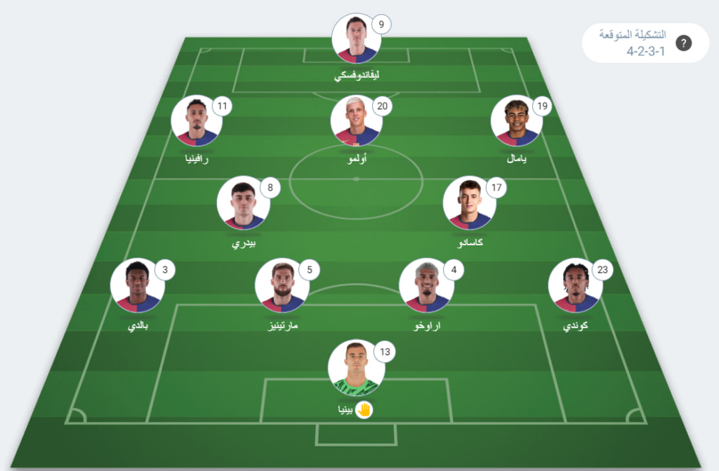 - خط الوسط الهجومي: لامين يامال، داني أولمو، رافينا.