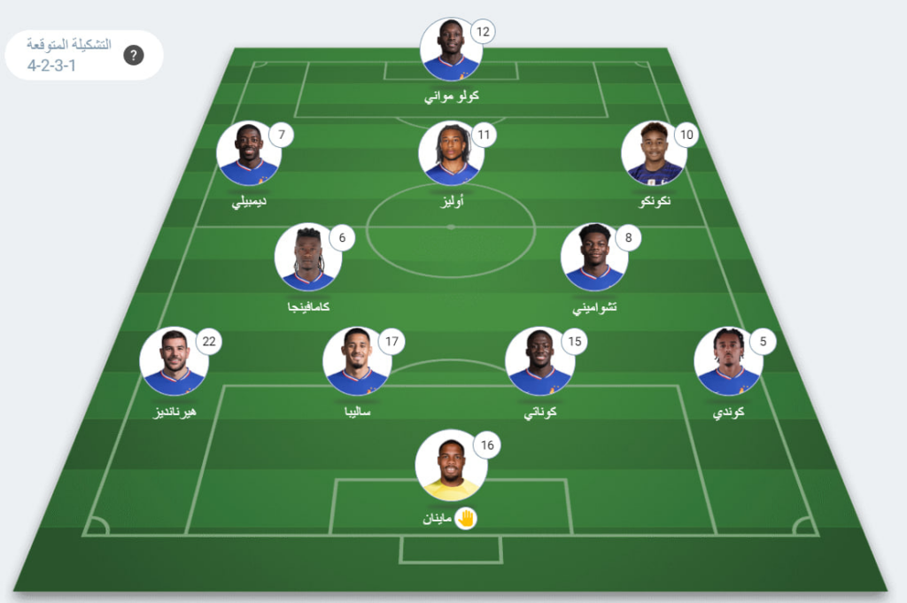 خط الدفاع: جول كوندي، إبراهيما كوناتي، ويليام ساليبا، ثيو هيرنانديز.