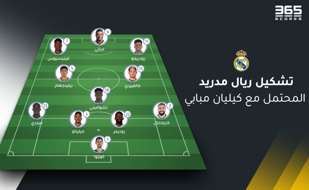 قد يلعب المدرب الإيطالي، على الرسم التكيكي 4-3-3 الكلاسيكية في تشكيل ريال مدريد مع الاعتماد على مبابي في مركز 9، وفينيسيوس على اليسار ورودريجو على اليمين، هذه التشكيلة منطقية حيث لعب مبابي في مركز 9 كثيرًا طوال مسيرته، ويسمح لفينيسيوس بالاحتفاظ بمكانه الطبيعي على اليسار.