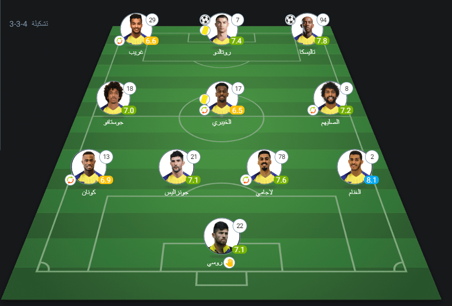 تقييم لاعبي النصر بعد الفوز على الطائي في دوري روشن السعودي