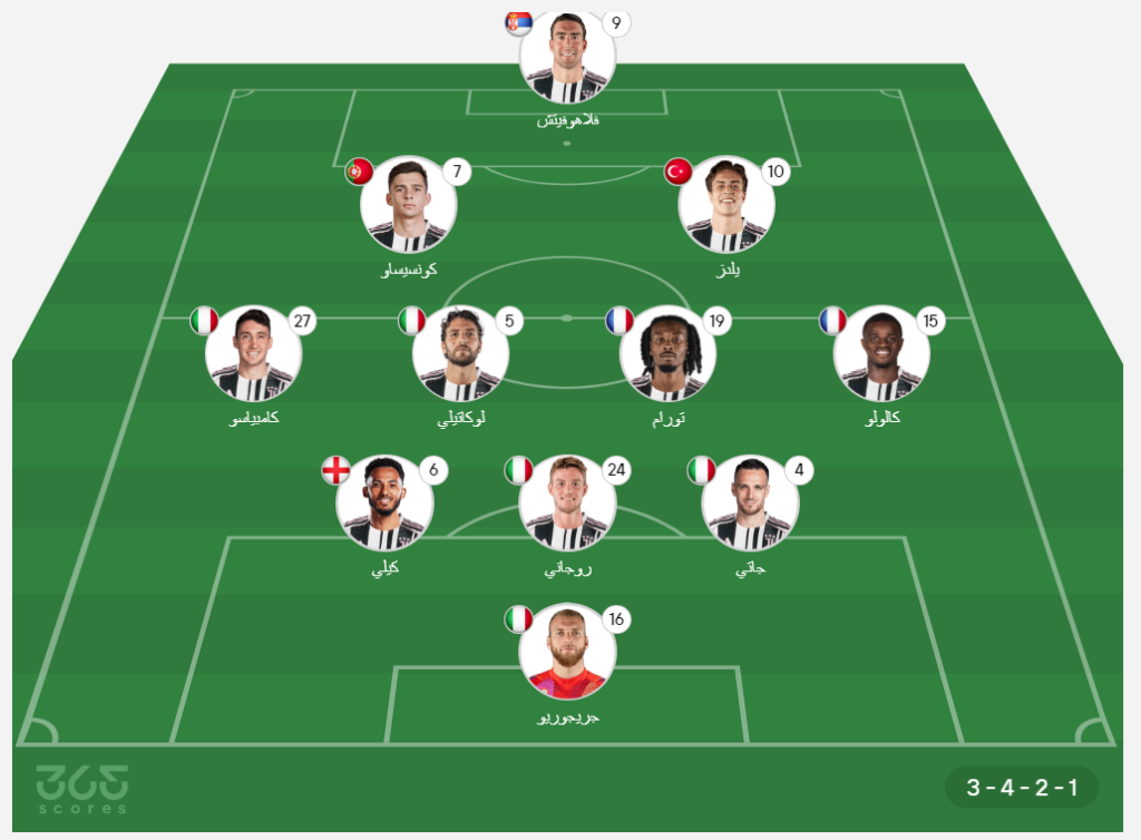 - دوشان فلاهوفيتش (يوفنتوس): سجل هدفين وصنع هدفًا، تقييمه 8.0.