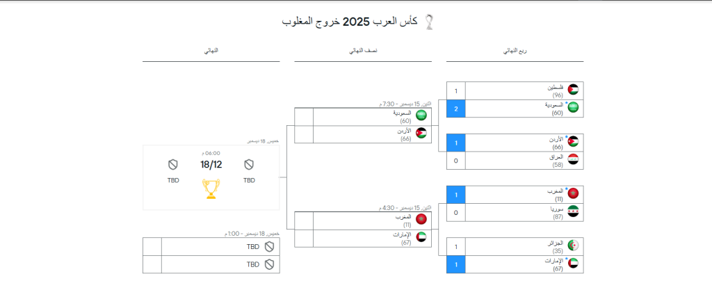 مواعيد مباريات نصف نهائي كأس العرب 2025