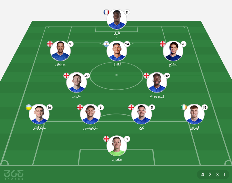 - خط الوسط: مارتن زوبيمندي، ديكلان رايس، ابريتشي ايزي