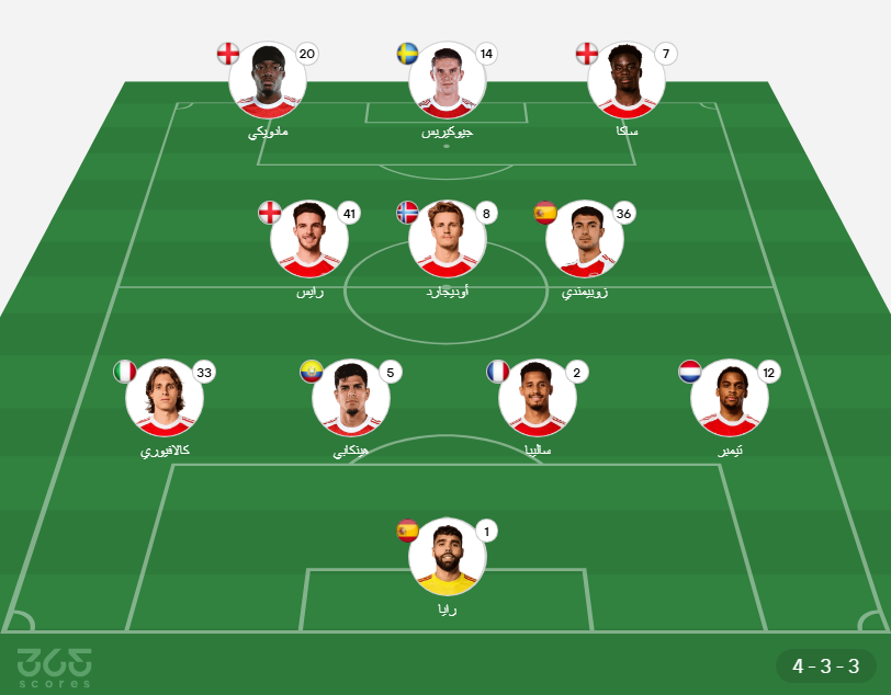 - خط الهجوم: بوكايو ساكا، فيكتور جيوكيريس، جابريل مارتينيلي