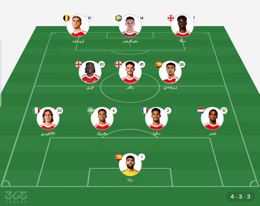 - خط الوسط: مارتن زوبيمندي، ديكلان رايس، إبريتشي إيزي