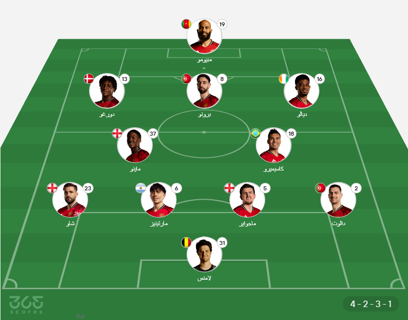 - خط الوسط: برونو فيرنانديز، كوبي ماينو، كاسيميرو