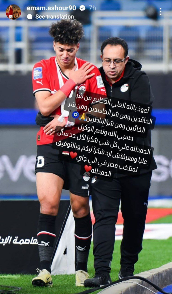 ونشر إمام عاشور صورة للإصابة التي تعرض إليها رفقة منتخب مصر على حسابه الشخصي على موقع التواصل الاجتماعي إنستجرام.