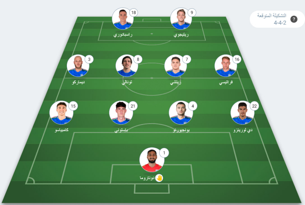 الهجوم: جياكمو راسبادوري، ماتيو ريتيجي.