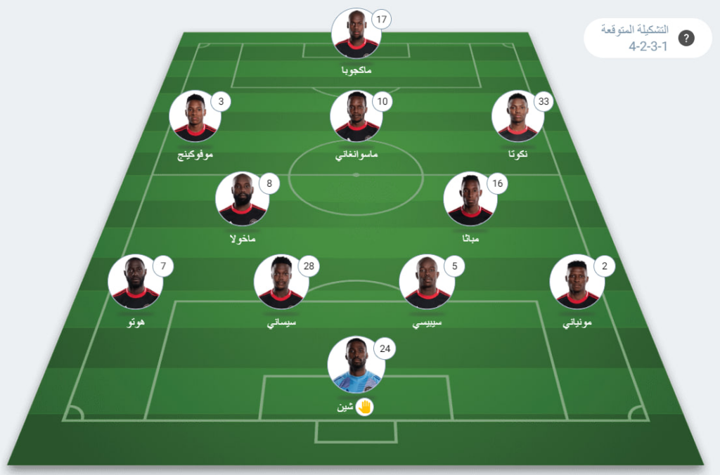 - خط الدفاع: ثابيسو مونياني، نكوسيناثي سيبيسي، تابيسو سيساني، ديون هوتو.