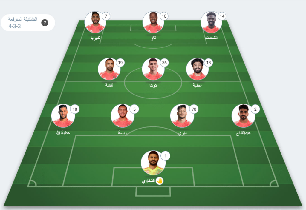 - خط الهجوم: حسين الشحات، بيرسي تاو، محمود كهربا.