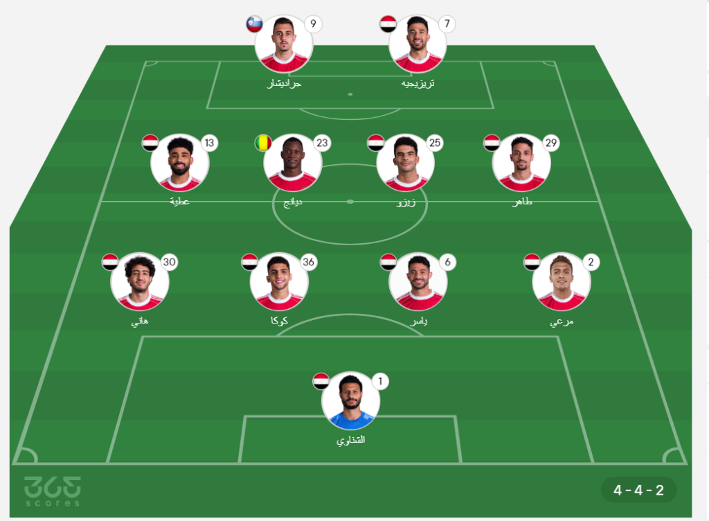 - خط الوسط: مروان عطية، أليو ديانج، أحمد سيد زيزو، طاهر محمد طاهر.