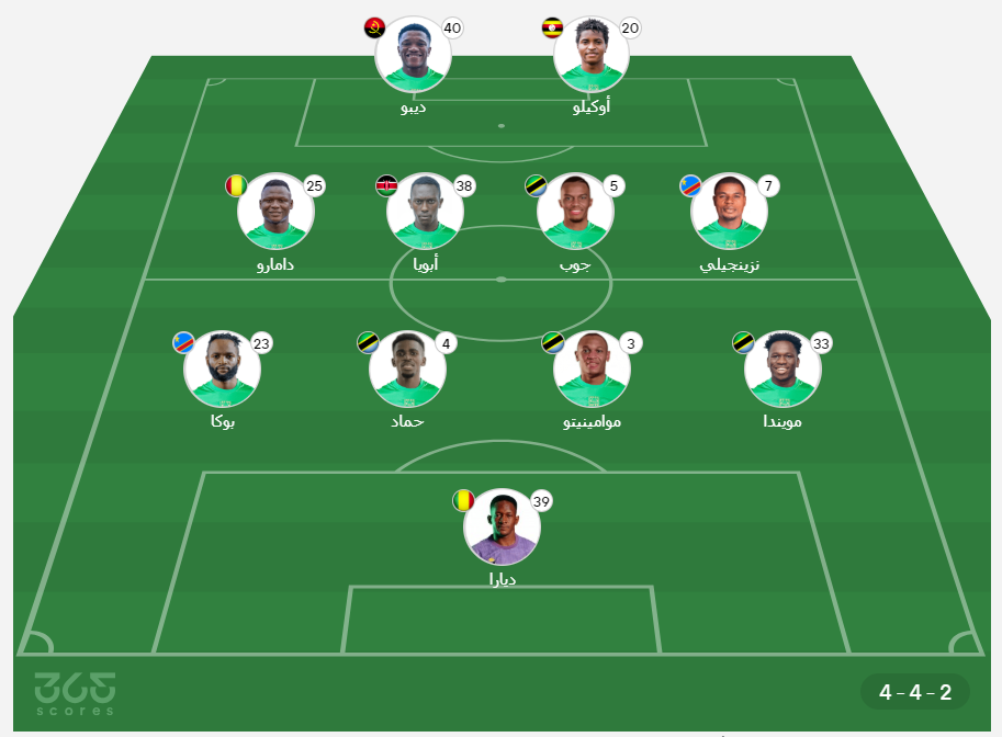 - خط الدفاع: باتريك مويندا، باكاري موامينيتو، إبراهيم حماد، تشادراك بوكا.