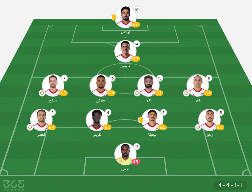 خط الدفاع: حسن علي – مناف يونس – ريبين غريب سولاقا – ميرخاس دوسكي.