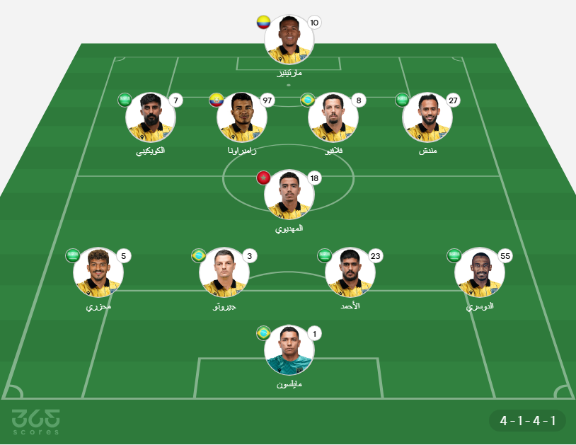- خط الدفاع: محمد وليد الدوسري، وليد الأحمد، أندري جيروتو