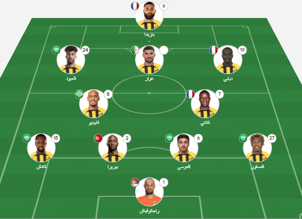 - خط الهجوم: موسى ديابي، كريم بنزيما، عبد الرحمن العبود.