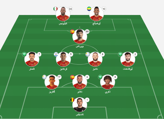 - خط الوسط: تركي العمار، إزيكويل فرنانديز، ناهيتان نانديز، كاميرون بويرتاس.