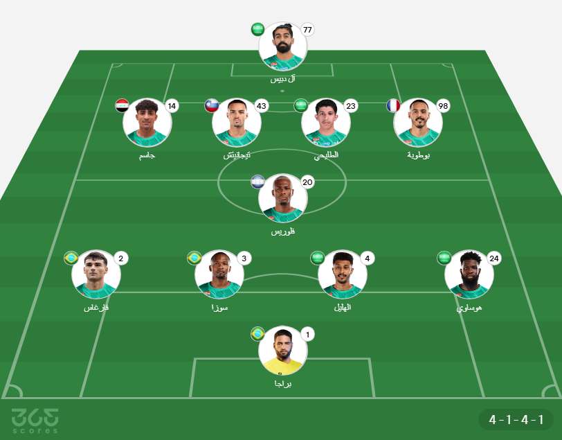 - خط الهجوم: موسى ديابي، صالح الشهري، روجر فيرنانديز