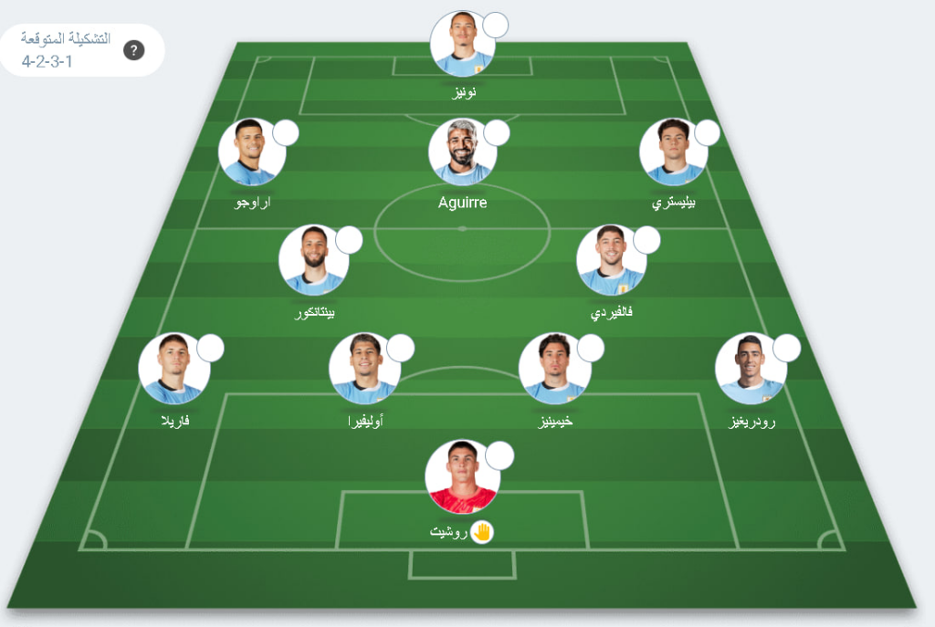 - خط الوسط الدفاعي: رودريجو بينتانكور، فيديريكو فالفيردي.