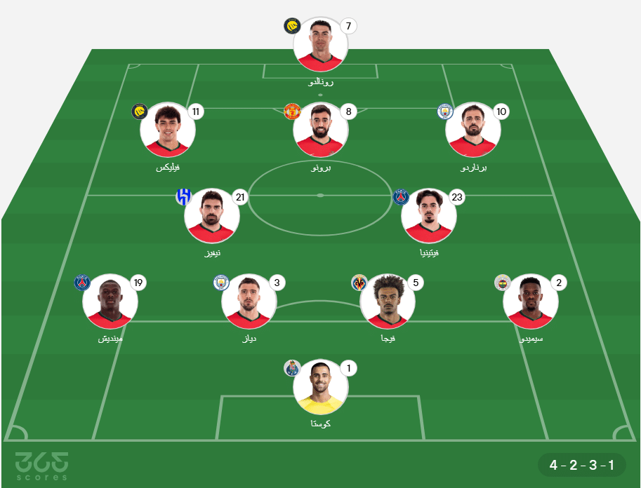 - خط الهجوم: جواو فيليكس، كريستيانو رونالدو، برناردو سيلفا