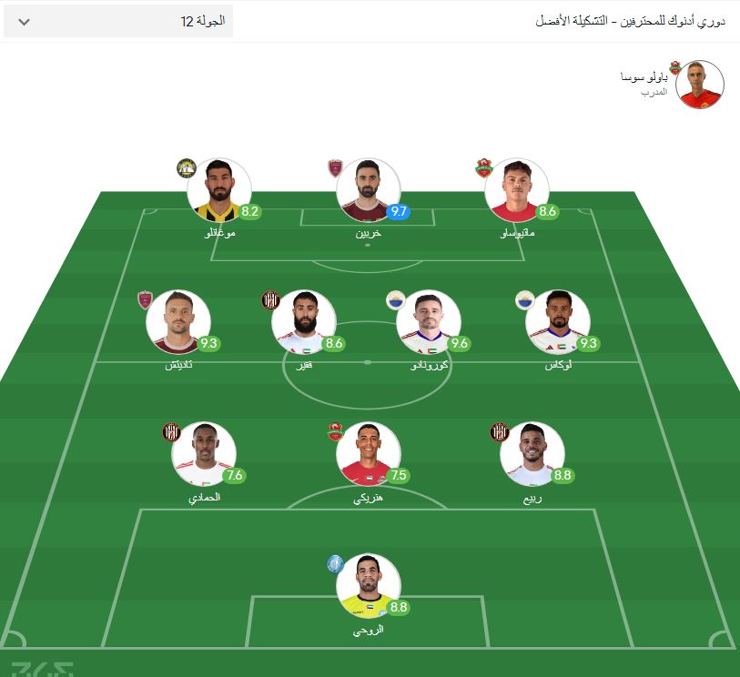 تشكيلة الجولة 12 من الدوري الإماراتي