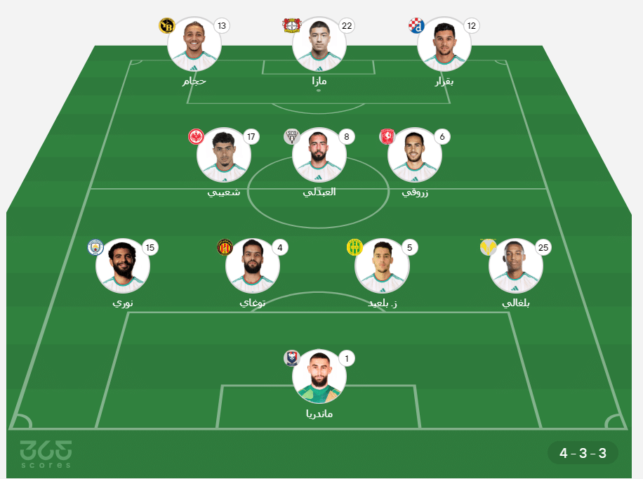 - خط الدفاع: ريان آيت نوري، محمد أمين توغاي، زين الدين بلعيد، رفيق بلغالي.