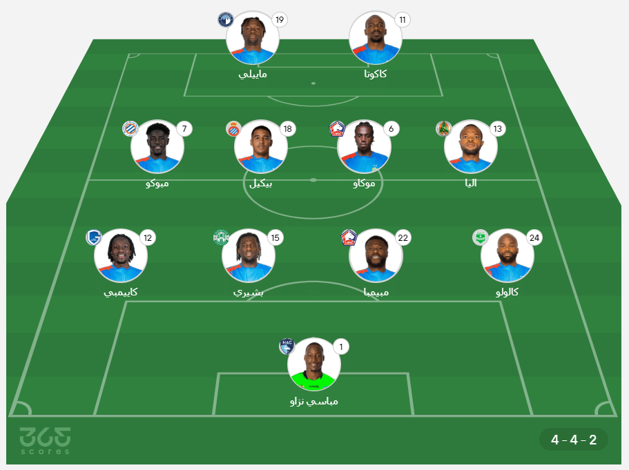 - حراسة المرمى: مباسي نزاو.