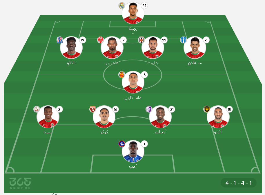 - خط الوسط الدفاعي: إسماعيل بن ناصر، هشام بوداوي.