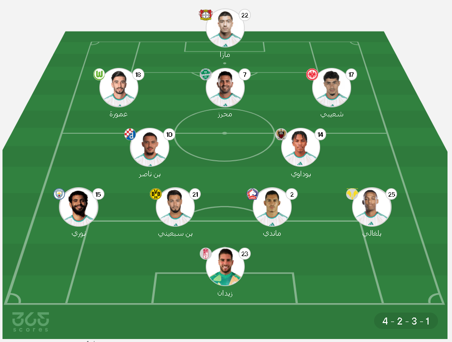 - خط الوسط الهجومي: محمد الأمين عمورة، رياض محرز، فارس شعيبي.