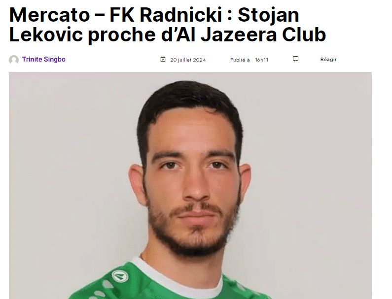ووفقا لما ذكره موقع AfricaFootUnited، فأن نادي الجزيرة الإماراتي مهتم بضم الحارس الصربي ستويان ليكوفيتش.