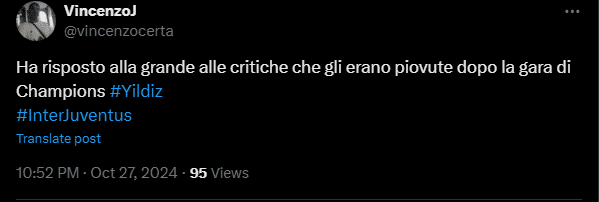 وأكمل واحد من جماهير اليوفي:” لقد رد يلدز على جميع الانتقادات التي وجهت إليه عقب مباراة دوري الأبطال”.