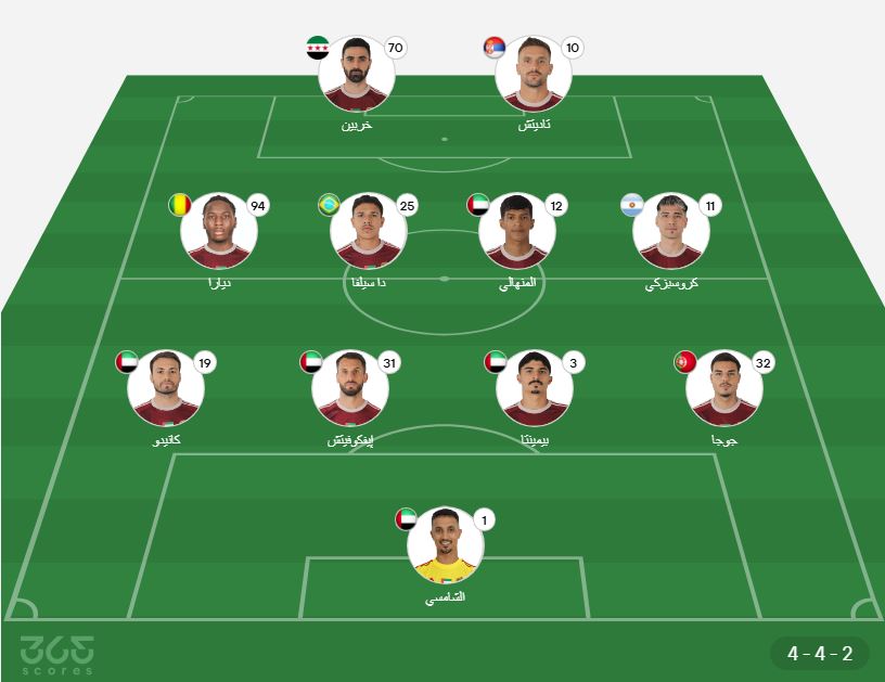 • خط الوسط: حمد المنهالي – جادسوم دا سيلفا – براهيما ديارا – فاكوندو كروسبزكي.