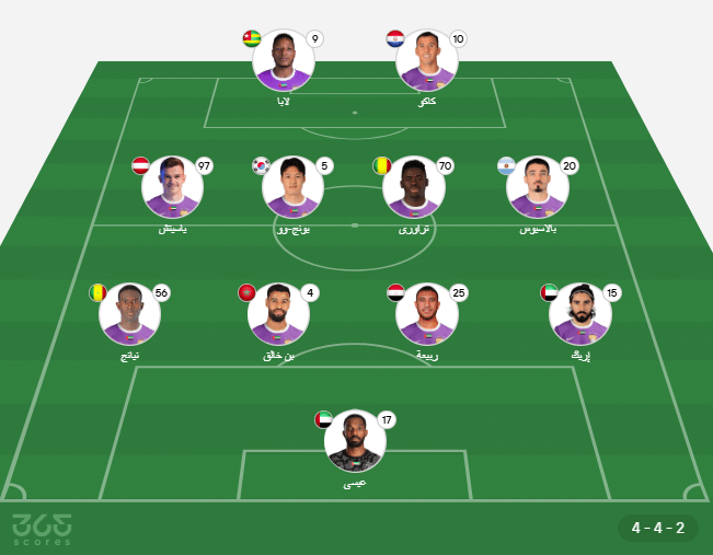 خط الوسط: أديس ياسيتش، عبد الكريم تراوري، بالاسيوس، بارك يونج وو