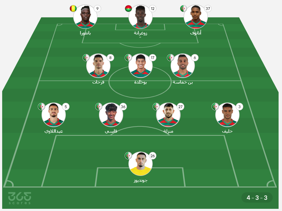 - خط الدفاع: أيوب عبداللاوي، يعقوب قاسي، عبد القادر منزلة، مروان خليف.