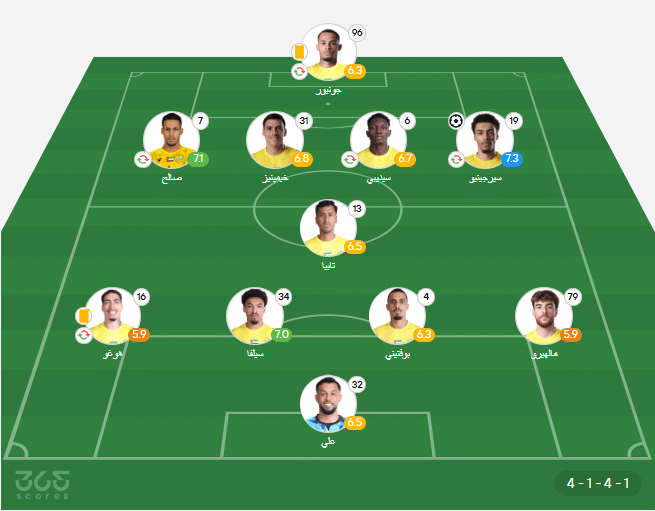 - خط الهجوم: علي صالح – ريناتو جونيور – سيرجينيو.