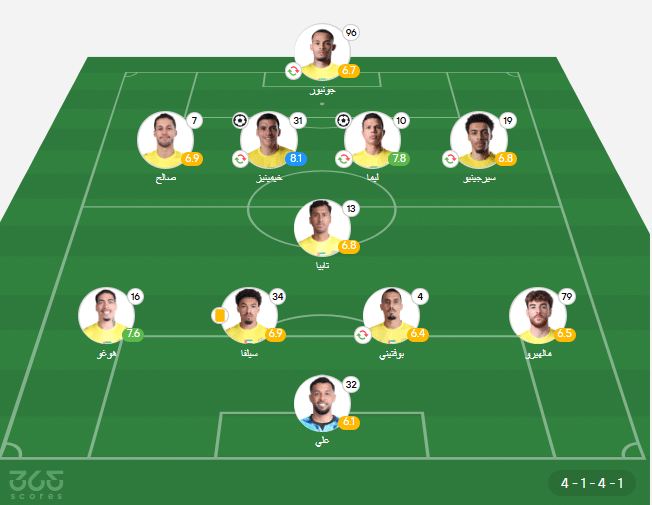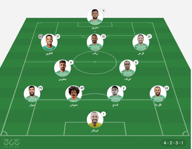 - خط الهجوم: علي صالح – ريناتو جونيور – سيرجينيو.