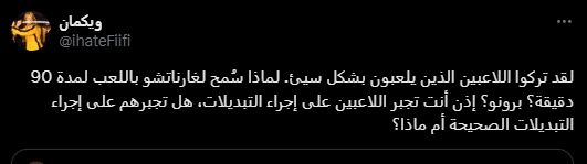 وتابع مشجع آخر: “جارناتشو وبورنو هما اللاعبين اللذان كان يجب اخراجهما من الملعب”.