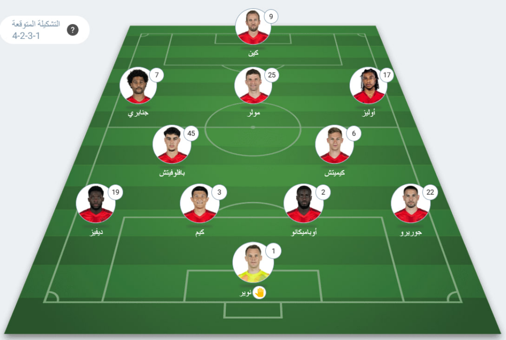 تشكيل بايرن ميونخ ضد فرانكفورت