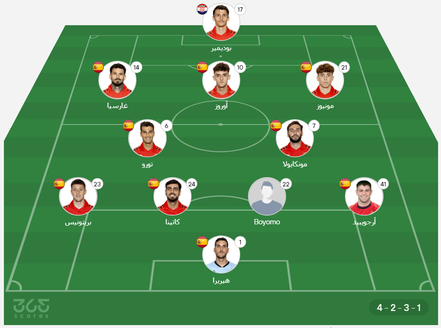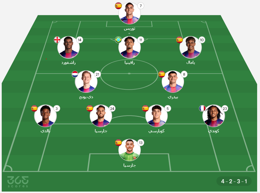 • خط الوسط الهجومي: ماركوس راشفورد، رافينيا، لامين يامال.