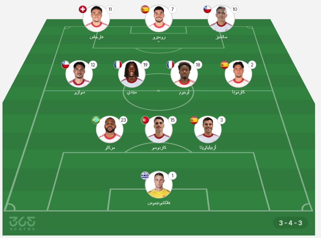 خط الهجوم: روبن فارجاس، إسحاق روميرو، أليكسيس سانشيز.
