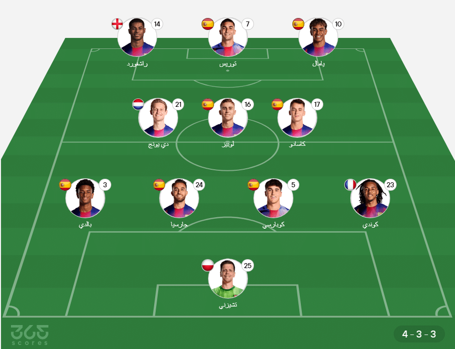 خط الهجوم: لامين يامال، فيران توريس، ماركوس راشفورد