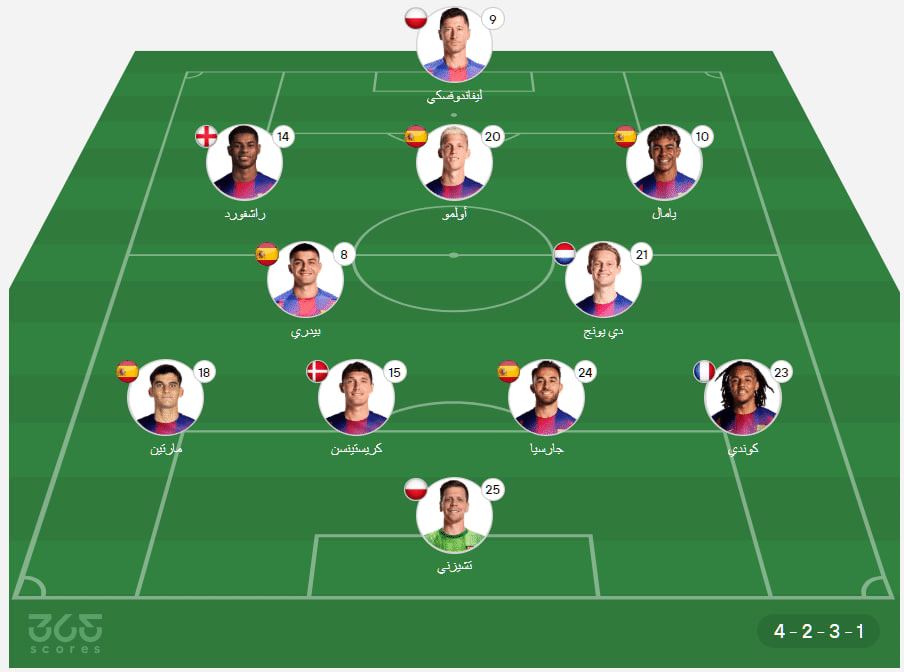 - خط الوسط الهجومي: ماركوس راشفورد، داني أولمو، لامين يامال.